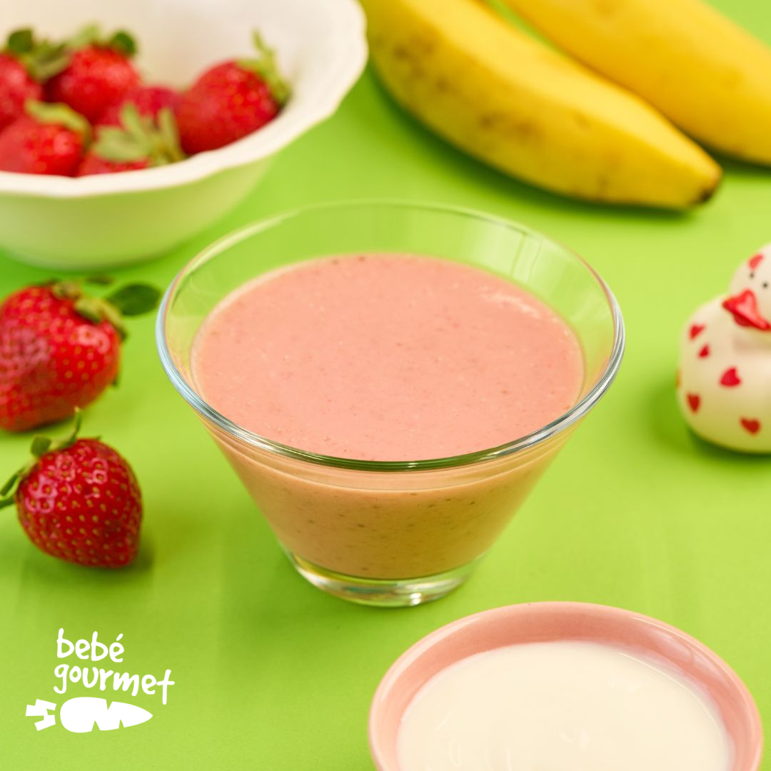 Morango, IOGURTE NATURAL (LEITE de vaca pasteurizado; NATAS; proteínas do LEITE e fermentos LÁCTEOS), Banana, Gelatina Neutra (Proteína animal (86%), humidade (<15%) e minerais (<2%)